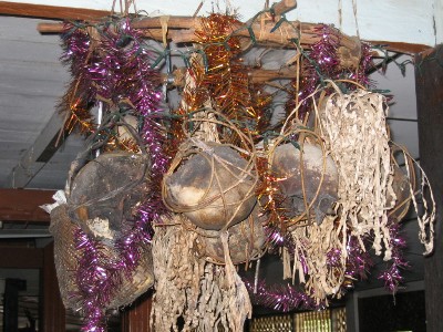 Some of the dinner guests. Note the slingshot spear guns in the foreground. |