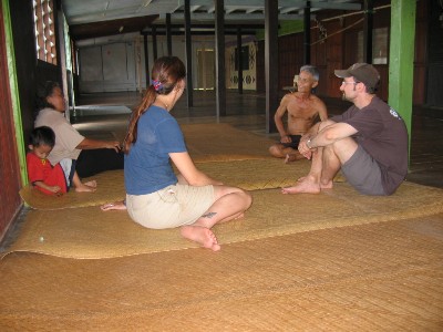 longhouse, drinking with the tribe (nevermind the satellite TV in the background).