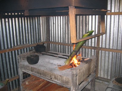 me to see the kill. The guys immediately stoked the fire on the cooking stone