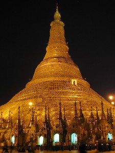 sun to go down. Huge spot lights are trained on the main stupa after dark and
